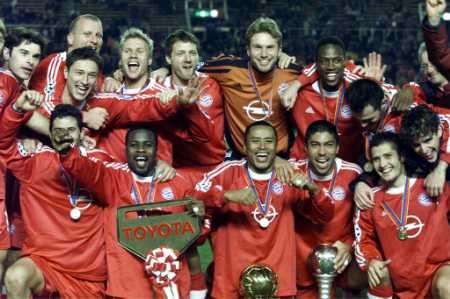 Juniors. 2001, Jugadores del Bayern Munich celebran su victoria en Tokio por 1-0 contra Boca Juniors |