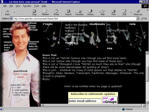 In honour of new beginnings, I present to you a whole new Lance-ish layout (may the BELL-eh layout rest in peace), inspired by the picture to your left and the accompanying quote: "I don't like to be the front man, I'm happy with what I'm doing." Humble words, though strangely ironic coming from a future movie's leading man. :-)