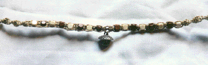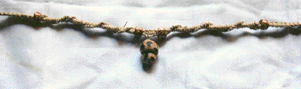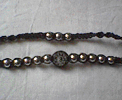 ![]() A026 - Hemp necklace with small wood beads and pewter mushroom charm