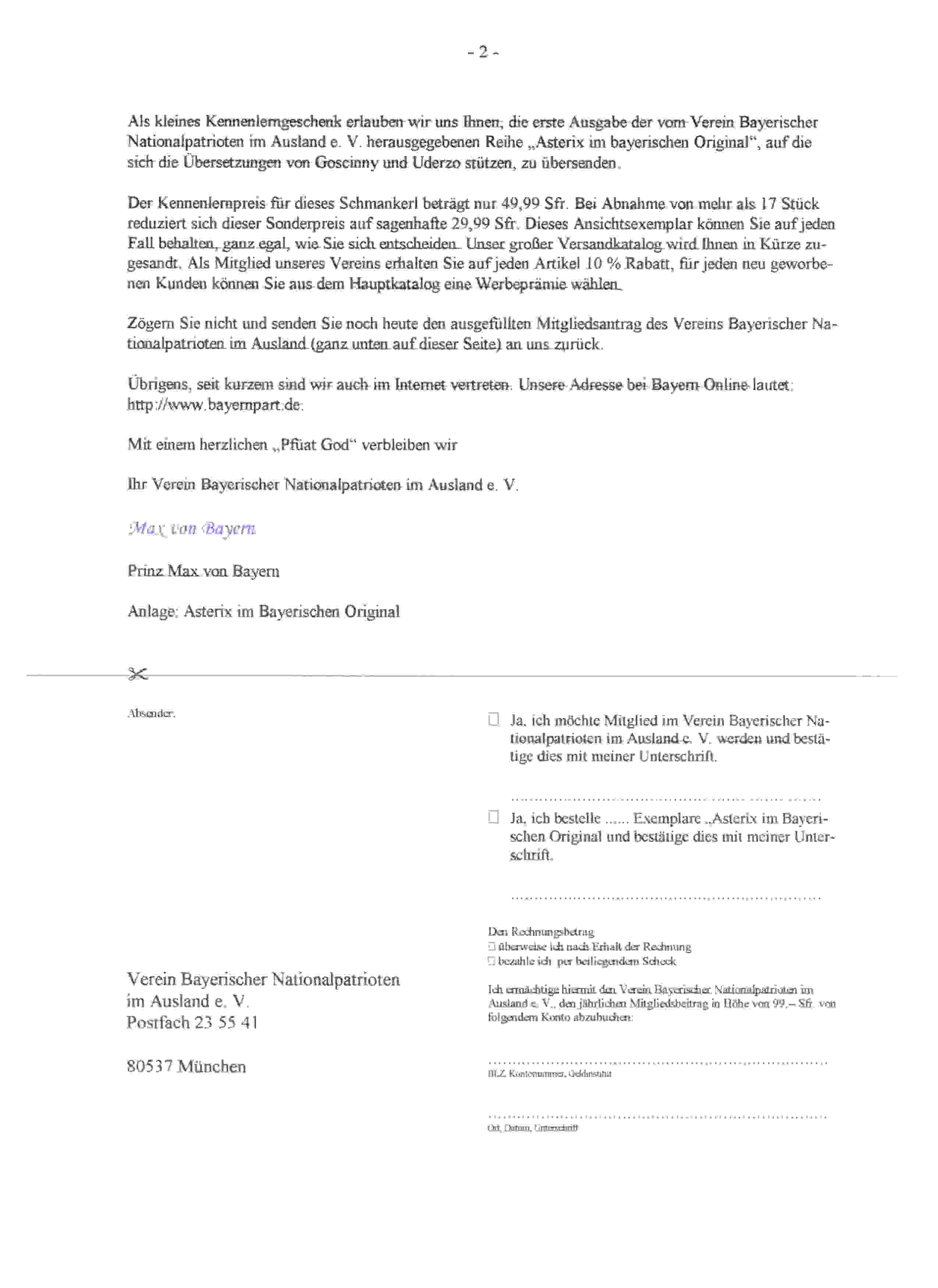 Die zweite Seite der Aktion "Bayerische Nationalpatrioten im Ausland" Tres & Pilade, Wasserburg, 07/1997